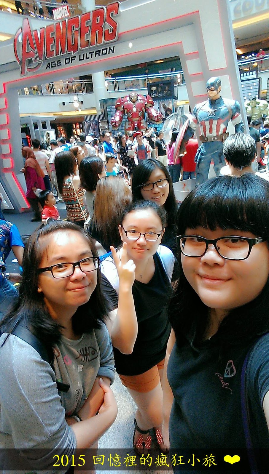 本来只是跟美国队长的合照,之后发现钢铁人和绿巨人浩克也一起入镜了!